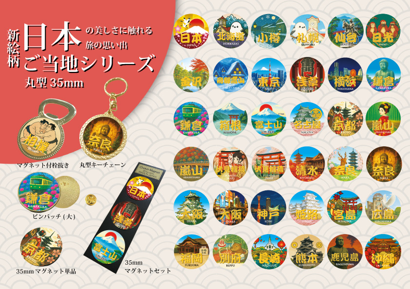 丸型35mmのご当地シリーズ(全37柄)、そして西は京都 奈良